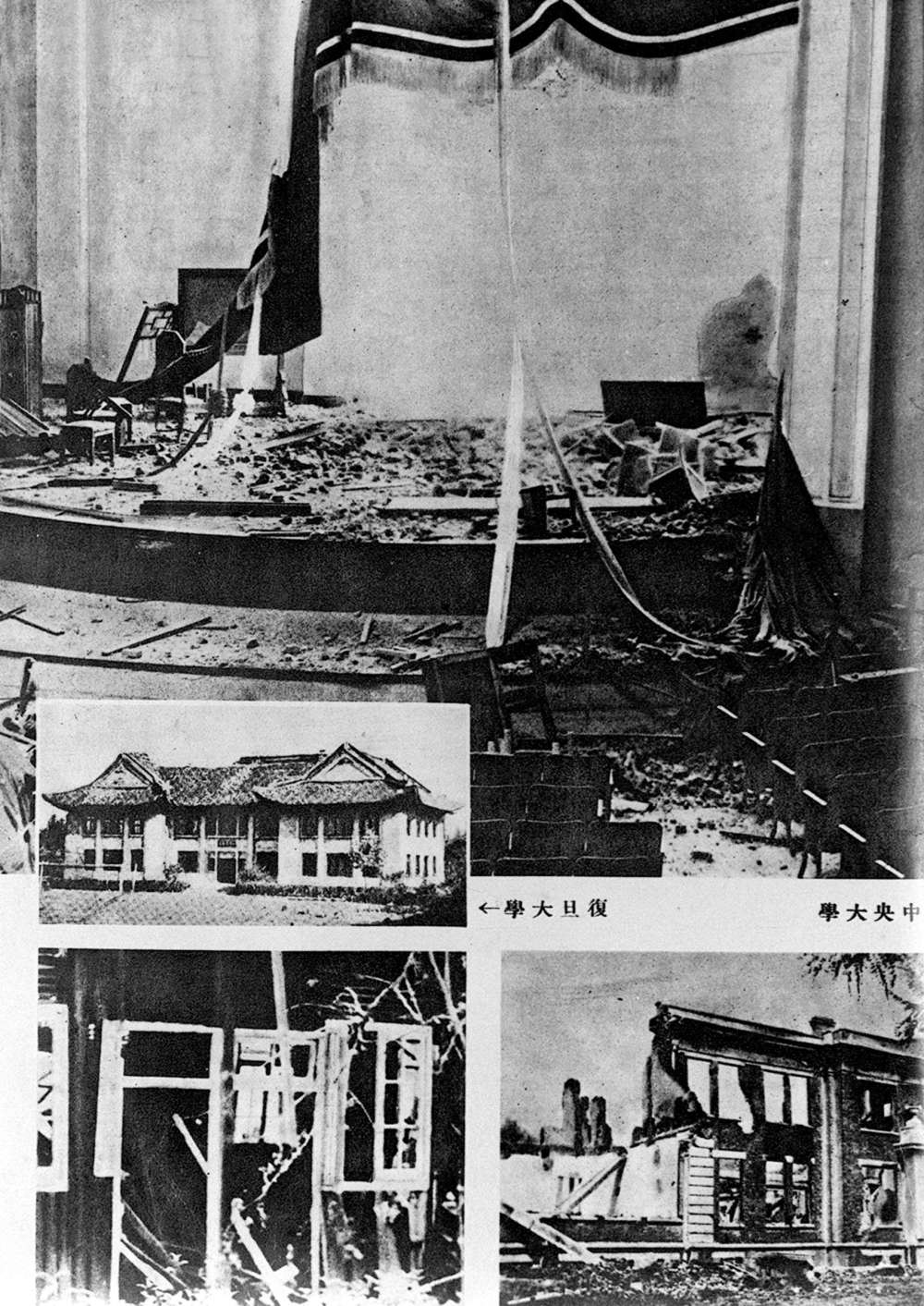 1937年8月13日,日本軍隊攻占上海時,復(fù)旦大學(xué)等文化機關(guān)慘遭破壞。新華社發(fā)