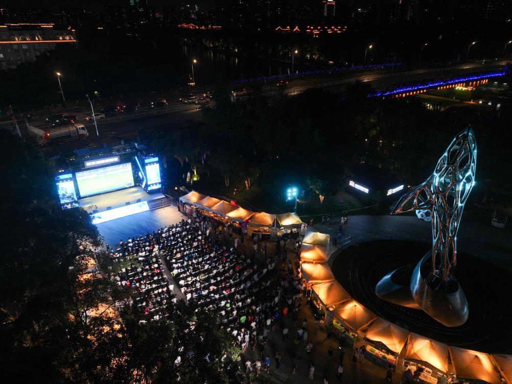 8月17日,在江蘇南京舉行的2025江蘇省城市足球聯(lián)賽第九輪比賽中,南京隊(duì)對(duì)陣鹽城隊(duì)。南京市在部分商場(chǎng)、街區(qū)等地設(shè)置觀賽“第二現(xiàn)場(chǎng)”,使用大屏幕同步直播賽事,同時(shí)設(shè)有游戲互動(dòng)區(qū)、煙火市集區(qū),讓球迷們度過(guò)歡樂(lè)時(shí)光。新華社記者 季春鵬 攝