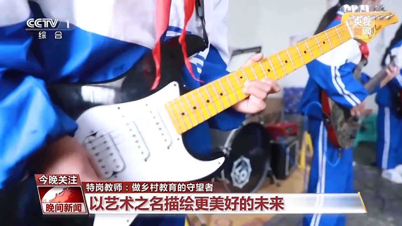 在貴州省六盤水市的海嘎村,特崗教師顧亞帶領(lǐng)孩子們玩搖滾,感受音樂傳遞的快樂與力量。