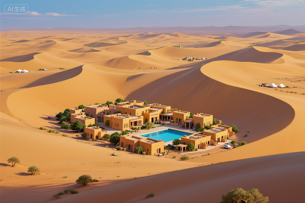 寧夏沙坡頭旅游區(qū)。圖片由AI生成