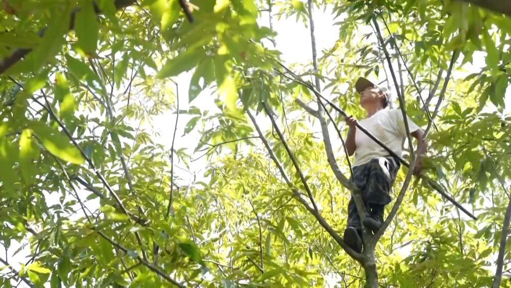 浙江省杭州市臨安區(qū)迎來了一年一度的山核桃采收季。在昌化鎮(zhèn)后營村,林農(nóng)們正忙著采收。