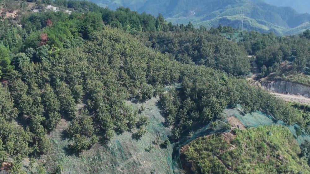 近年來,臨安區(qū)大力推廣張網(wǎng)采收,在昌化鎮(zhèn)白牛村西谷坪經(jīng)濟(jì)林林場,一張張綠色的網(wǎng)像地毯一樣鋪滿山頭。