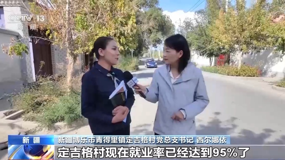 新疆博樂市青得里鎮(zhèn)定吉格村黨總支書記 西爾娜依:定吉格村現(xiàn)在就業(yè)率已經(jīng)達(dá)到95%了,相當(dāng)于每個人都有活干,每個人都有錢掙。
