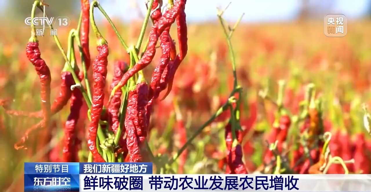 說(shuō)完了主角,再來(lái)說(shuō)說(shuō)配菜。這里面的土豆來(lái)自博爾通古鄉(xiāng)。最關(guān)鍵的辣椒,是當(dāng)?shù)氐闹饕r(nóng)作物,來(lái)自“辣椒之鄉(xiāng)”安集海鎮(zhèn)。過(guò)去這里的辣椒只是農(nóng)民零散種植,如今已經(jīng)形成了從育種、種植、加工到銷(xiāo)售的完整產(chǎn)業(yè)鏈。這些辣椒不僅給大盤(pán)雞“注入靈魂”,也滿足了全國(guó)的餐桌需求,還出口到韓國(guó)、日本等地。