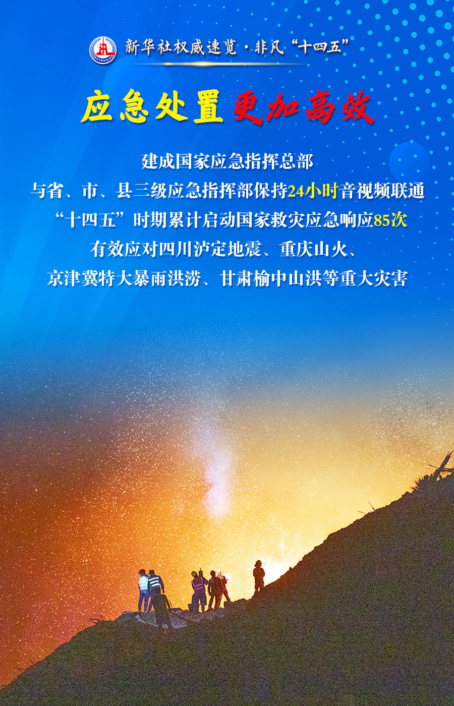 24日,國新辦舉行“高質(zhì)量完成‘十四五’規(guī)劃”發(fā)布會,應(yīng)急管理部部長王祥喜說,“十四五”時期,應(yīng)急管理走過了一段很不平凡的里程,打贏了一場又一場搶險救災(zāi)的大仗硬仗,推動應(yīng)急管理體系和能力建設(shè)取得突破性進展和歷史性成就。跟隨海報,一起了解。