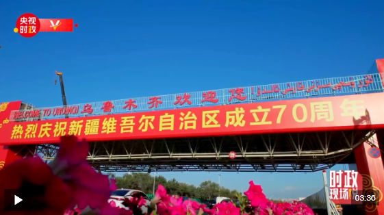 中共中央總書記、國(guó)家主席、中央軍委主席習(xí)近平率中央代表團(tuán)23日下午乘專機(jī)抵達(dá)烏魯木齊,出席新疆維吾爾自治區(qū)成立70周年慶?;顒?dòng)。14時(shí)20分許,習(xí)近平乘坐的專機(jī)在天山國(guó)際機(jī)場(chǎng)降落,等候在停機(jī)坪的新疆各族各界群眾熱烈歡呼。習(xí)近平走下舷梯時(shí),少先隊(duì)員獻(xiàn)上鮮花。各族群眾代表身著民族服飾,載歌載舞,歡迎總書記的到來,表達(dá)對(duì)總書記的衷心祝福。