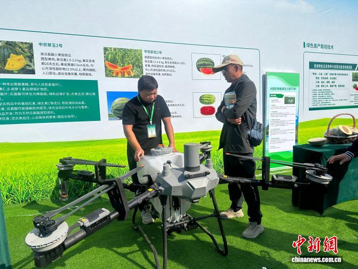 9月23日,新疆慶祝“中國農(nóng)民豐收節(jié)”活動在昌吉州舉行,圖為現(xiàn)場展出的農(nóng)業(yè)植保無人機(jī)。 左丹丹 攝