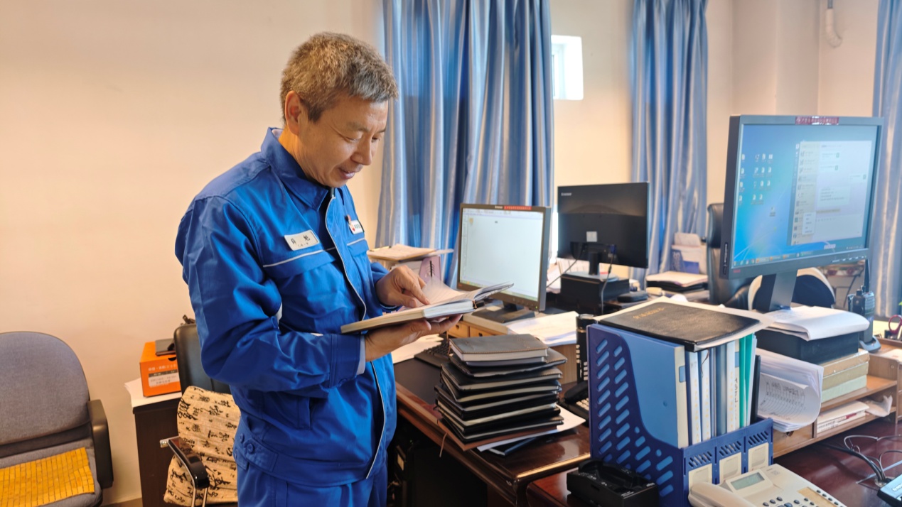 薛魁在查看工作筆記。中國經(jīng)濟(jì)網(wǎng)記者 何欣攝
