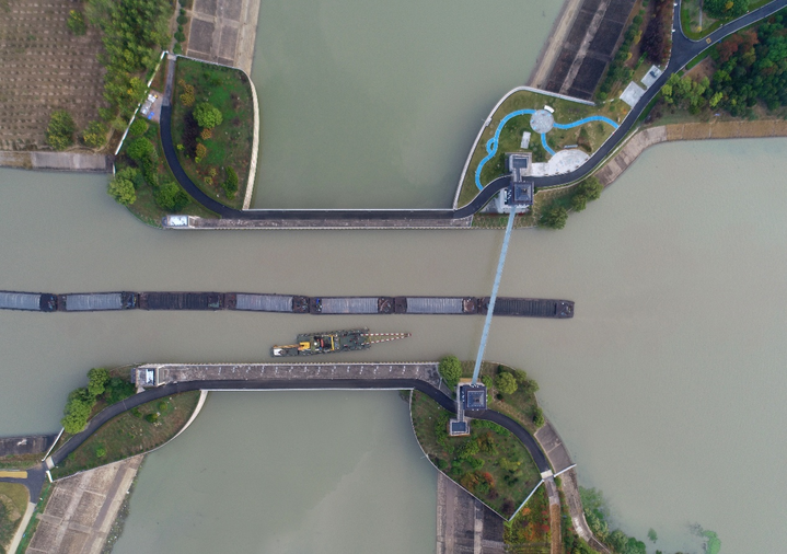 作為淮河入海水道二期工程的核心節(jié)點(diǎn),淮安水利樞紐大運(yùn)河水上立交建成便是“亞洲最大水立交”。京杭大運(yùn)河、蘇北灌溉總渠、淮河入海水道,三條載入史冊(cè)的人工水道在此交匯,“兩橫一縱”的格局間,藏著建設(shè)者們最棘手的難題?!岸诠こ桃o鄰布置,水系又密、水頭還高。”王洪玉抬手比劃著樞紐布局,“我們先做好基坑防滲工作,再通過(guò)開(kāi)挖臨時(shí)導(dǎo)航明渠來(lái)保障運(yùn)河航運(yùn),工程在緊鑼密鼓地推進(jìn)?!?/p>