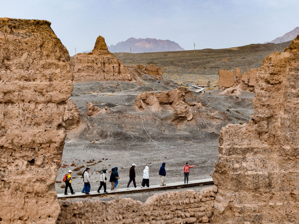 “克孜爾尕哈”意為“紅色哨卡”。夕陽(yáng)下,這座漢代軍事設(shè)施的夯土墻體被映照得棱角分明,泛著淡淡的金紅色?!罢驹谶@里,仿佛看到了當(dāng)年的烽火傳訊?!币幻慰透锌卣f(shuō)。
