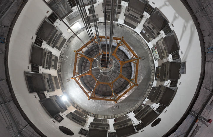 這是2025年10月1日在安徽合肥未來大科學(xué)城緊湊型聚變能實(shí)驗(yàn)裝置(BEST)建設(shè)現(xiàn)場(chǎng)拍攝的成功落位安裝的杜瓦底座(無人機(jī)照片)。新華社記者 周牧 攝