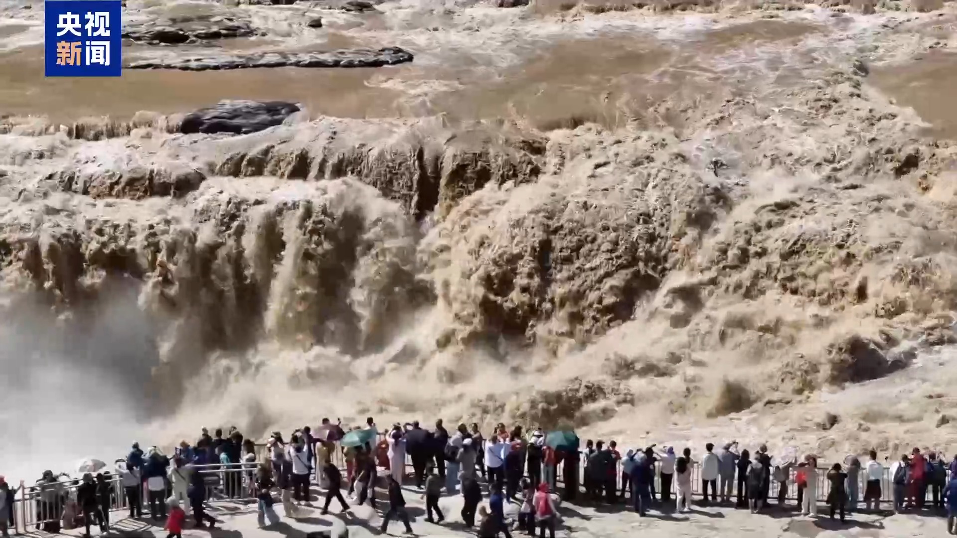 遠遠望去,黃河水奔騰著,呼嘯向前,水霧在岸邊漫開;陽光穿破云層,折射出一道道絢爛彩虹。晉陜峽谷中,黃河以獨有的磅礴氣勢與詩意之美,吸引著八方來客。
