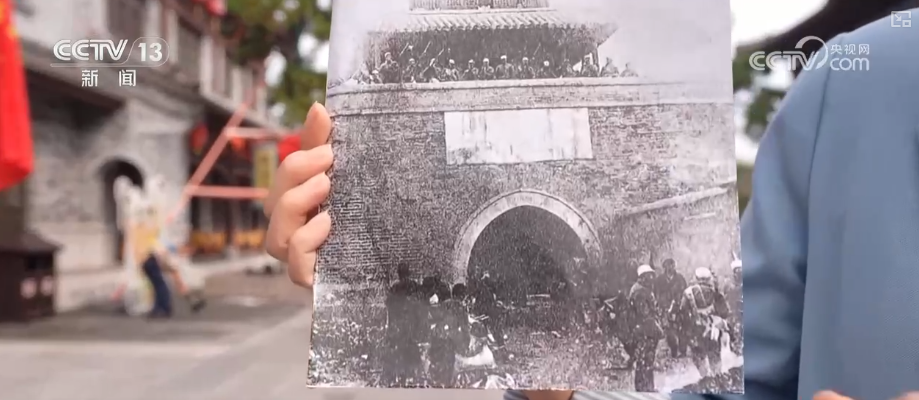 莒國(guó)古城里到處都是喜氣洋洋、熱鬧非凡。這張?zhí)厥獾恼掌【暗鼐褪窃谶@里,這是當(dāng)年莒城解放戰(zhàn)后的情形,戰(zhàn)士們登上了城樓,定格下了這份來之不易的勝利。