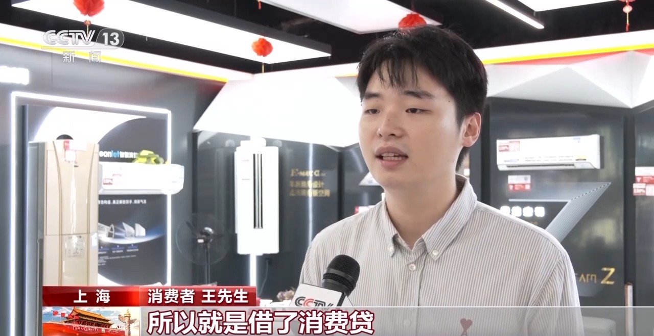 消費(fèi)者 王先生:我想一次性把家電買(mǎi)齊,所以借了消費(fèi)貸。有國(guó)家的補(bǔ)貼,緩解了我的資金壓力,其次就是它操作其實(shí)比較方便,比較快速地就能把我想買(mǎi)的都買(mǎi)齊。