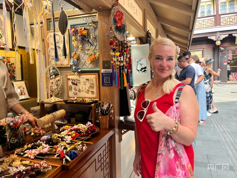 除了時尚消費的多元選擇,上海的特色消費更從“傳統(tǒng)好物”延伸至“科技潮品”,在滿足不同需求的同時,也向境外游客傳遞著中國文化的溫度與現(xiàn)代生活的便利?!拔屹I了很多中國茶葉,買了玉手串。我還買了各種絲綢制品,有漂亮的裙子、絲巾,還有一條可以和媽媽一起使用的絲綢毯子。”俄羅斯游客艾琳娜的行李箱里,裝滿了頗具中國風的優(yōu)質商品,這些都是她眼中“最有中國味道的伴手禮”。