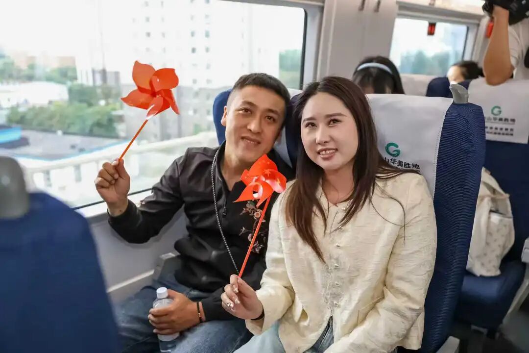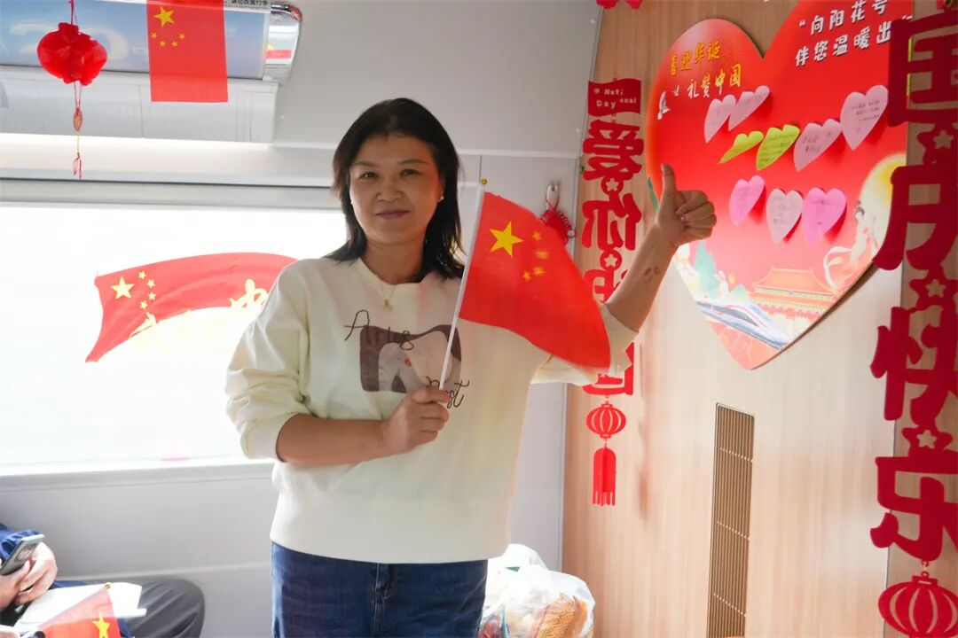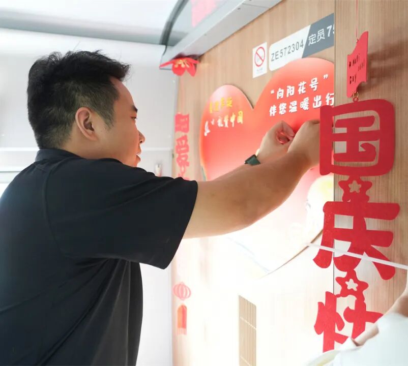 旅客們在心形便簽紙上寫下美好的祝福和期許,并粘貼在車廂“祝福墻”上,記錄下精彩難忘的瞬間。