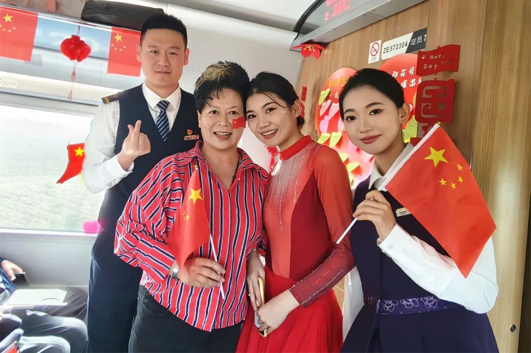 在沈陽客運段擔(dān)當(dāng)?shù)纳蜿柋敝翝h口G3486次列車上,一曲扇子舞《萬疆》拉開了高鐵聯(lián)歡活動的序幕,書寫出“我的鐵路風(fēng)景”活動中動人的篇章。