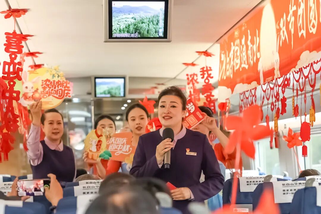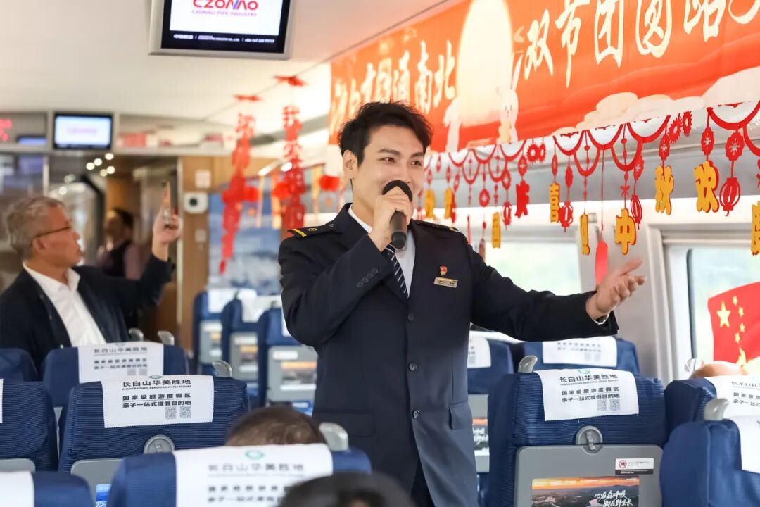 沈佳高鐵沈白段開通運營后,迎來第一個國慶中秋假期。長春客運段在長春至青島北的G3565次列車上舉辦“‘我的鐵路風(fēng)景’——沈白高鐵通南北 雙節(jié)團(tuán)圓路更捷”列車聯(lián)歡活動。