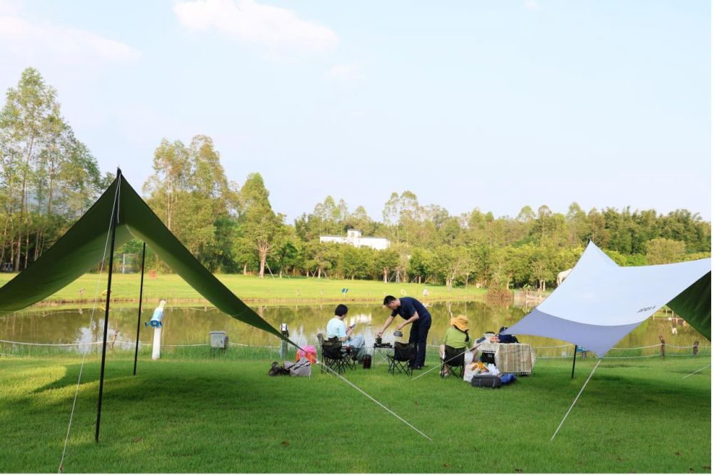 國慶中秋假期,廣州的游客在天幕旁享受露營時(shí)光。新華社記者鐘焯 攝