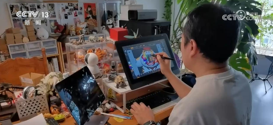 成都博物館文化創(chuàng)意產(chǎn)業(yè)部工作人員伍娜介紹,在整個文創(chuàng)行業(yè)發(fā)展起來后,文博行業(yè)也進行了一些大膽的嘗試,包括和一些藝術(shù)家、非遺的傳承人,以及現(xiàn)在比較受年輕人歡迎的IP來進行一些跨界的合作。他們想了一個創(chuàng)意點,就是在“胖虎”的手上拿了很多具有成都代表性的元素,比如說茶館文化就拿了茶壺。
