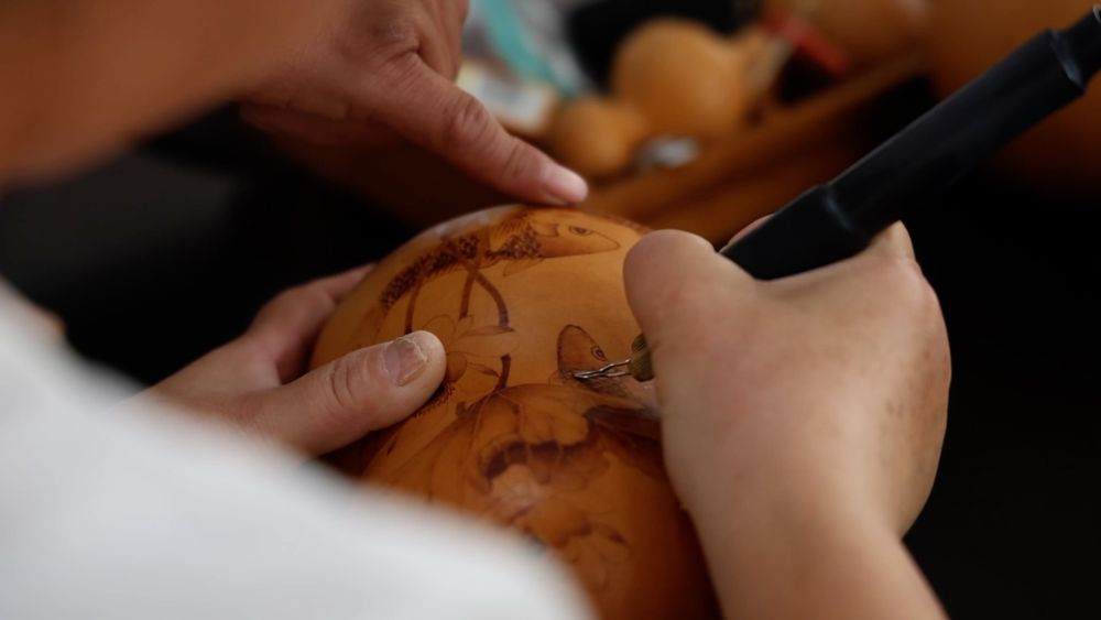 金秋10月,天津市濱海新區(qū)太平鎮(zhèn)的田野間,連片葫蘆地迎來(lái)豐收。在太平葫蘆特色產(chǎn)業(yè)園加工車間,工匠們以鐵為筆,在葫蘆上勾勒出精細(xì)的山水、花鳥或福祿圖案。經(jīng)過(guò)打磨、烙畫、拋光等工序,普通葫蘆價(jià)值得到大幅提升。