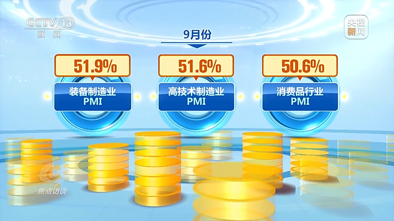 工業(yè)企業(yè)利潤(rùn)的明顯改善釋放的是市場(chǎng)需求在增加、價(jià)格在回升等積極信號(hào)。類(lèi)似的積極信號(hào),我們?cè)谥圃鞓I(yè)采購(gòu)經(jīng)理指數(shù)(PMI)中也能看到。9月份,裝備制造業(yè)、高技術(shù)制造業(yè)和消費(fèi)品行業(yè)PMI分別為51.9%、51.6%和50.6%,均位于擴(kuò)張區(qū)間。生產(chǎn)經(jīng)營(yíng)活動(dòng)預(yù)期指數(shù)為54.1%,連續(xù)三個(gè)月回升。