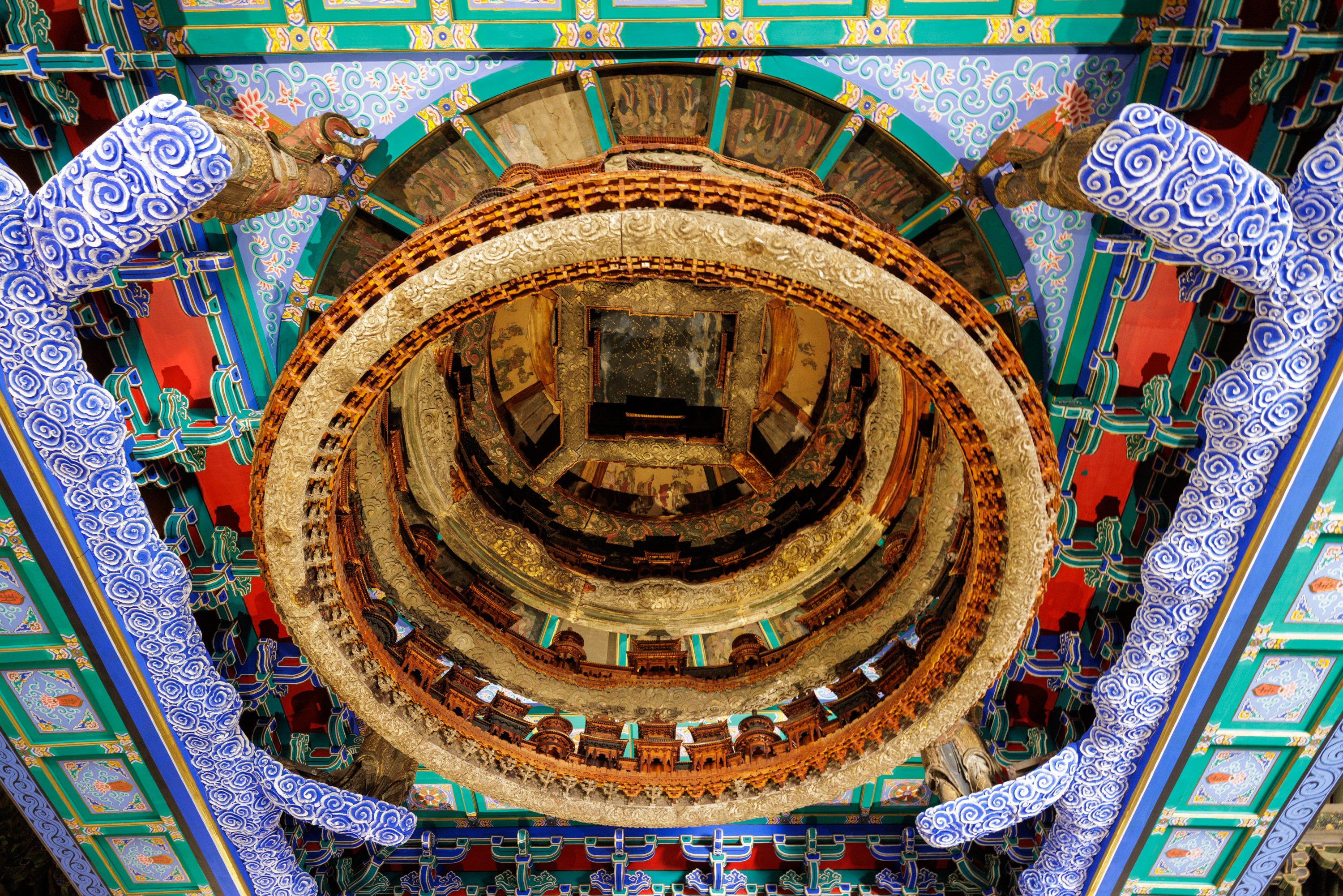 北京隆福寺萬(wàn)善正覺(jué)殿天宮藻井。新京報(bào)記者 王子誠(chéng) 攝
