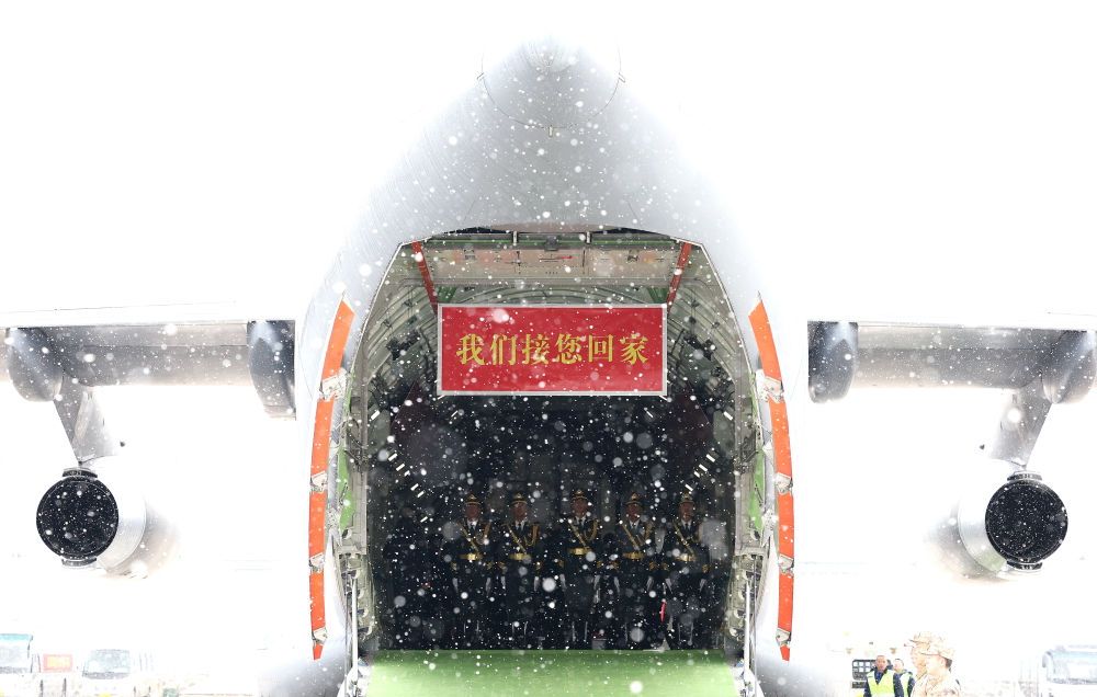 2023年11月23日,第十批在韓中國人民志愿軍烈士遺骸抵達(dá)沈陽桃仙國際機(jī)場。新華社記者 曹燦 攝