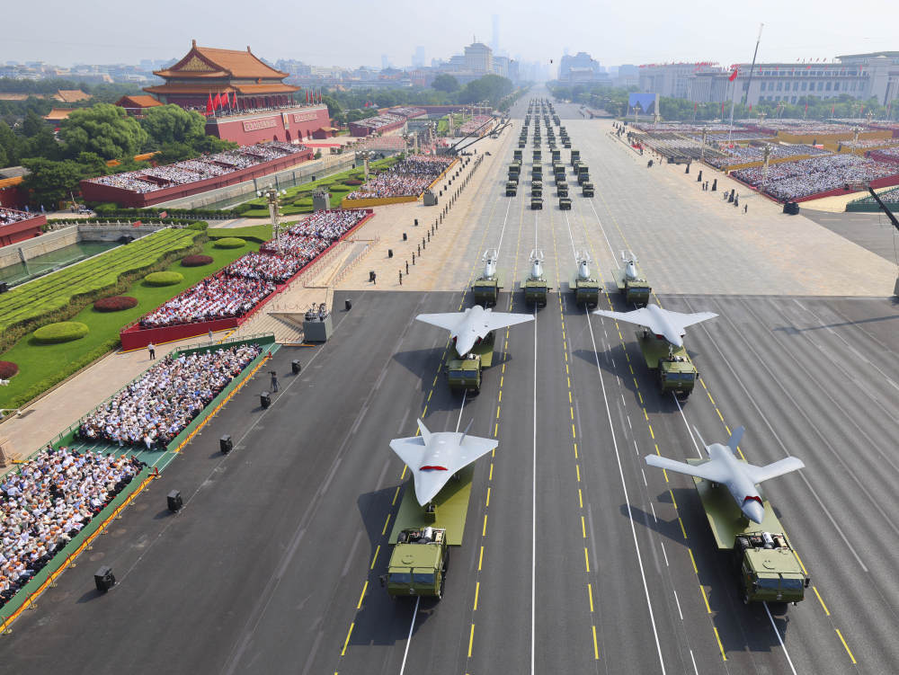 9月3日,紀(jì)念中國人民抗日戰(zhàn)爭暨世界反法西斯戰(zhàn)爭勝利80周年大會在北京隆重舉行。這是裝備方隊(duì)接受檢閱。新華社記者 劉續(xù) 攝