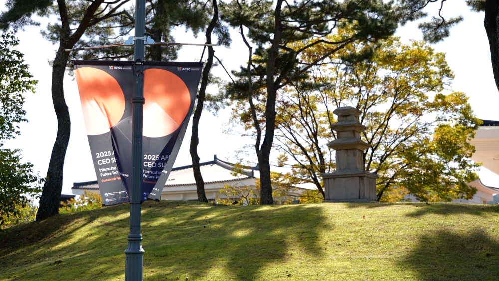 時值亞太經(jīng)合組織第三十二次領導人非正式會議,印有APEC標識的條幅在慶州隨處可見。