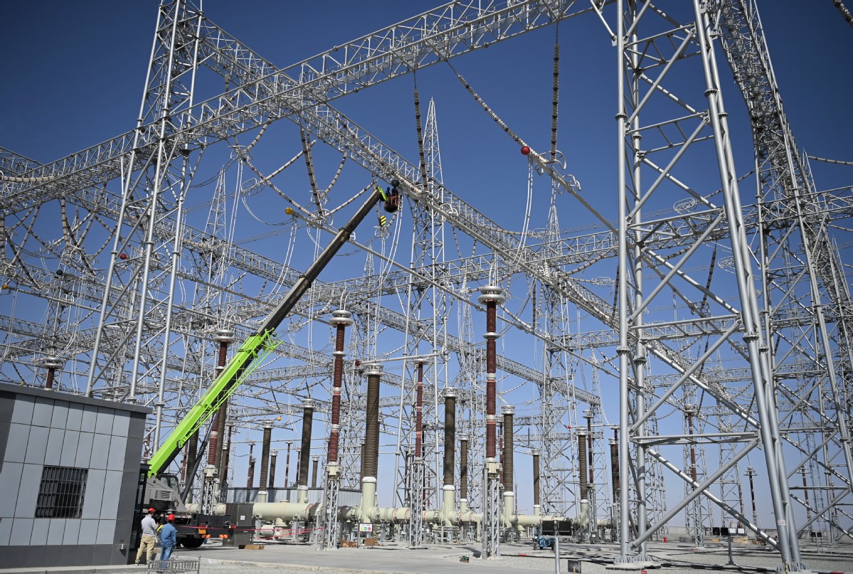 2025年9月28日,且末750千伏變電站新建工程建設(shè)現(xiàn)場,作業(yè)人員對管母金具進(jìn)行檢查復(fù)驗(yàn)。(馬元 攝)