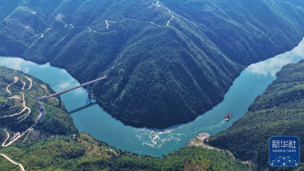 ↑ 10月31日,小灣東站下方的瀾滄江波光粼粼(無人機(jī)照片)。