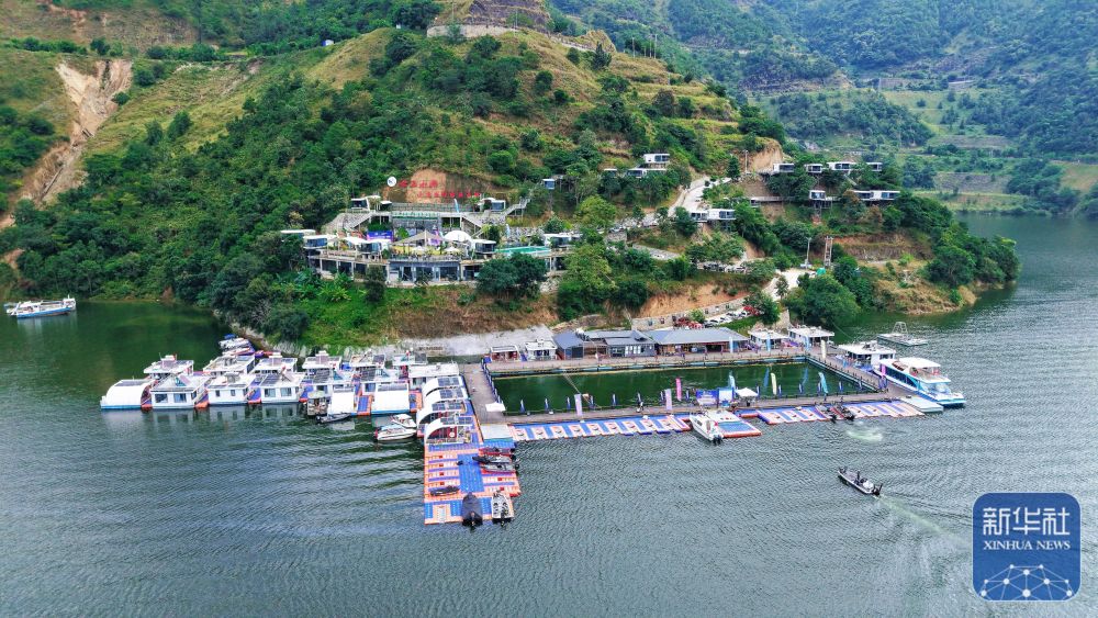 ↑ 這是10月31日拍攝的集水上釣棚、太空艙民宿、書屋、咖啡屋、餐廳等配套設(shè)施于一體的“云上小灣”休閑園(無人機(jī)照片)。