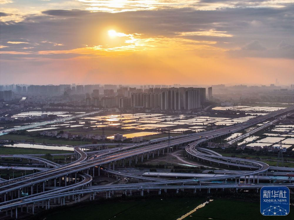 ↑沐浴在落日余暉里的南中高速新隆互通(2024年10月17日攝,無人機照片)。南中高速橫跨廣州、中山兩市,南通珠海、西進江門、東達深圳,串聯(lián)起粵港澳大灣區(qū)核心區(qū)域東西南北大通道。通車后從廣州南沙15分鐘可至中山城區(qū),20分鐘可達深圳寶安。新華社記者 劉大偉 攝