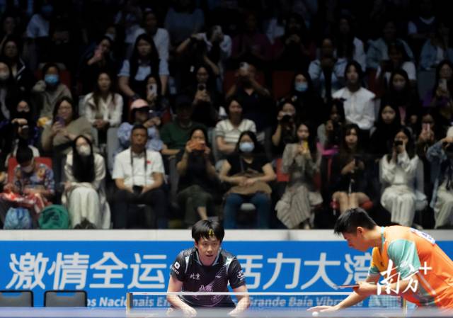 11月10日,全運(yùn)會乒乓球男子單打比賽,觀眾在球員發(fā)球前暫停助威。董天健 攝