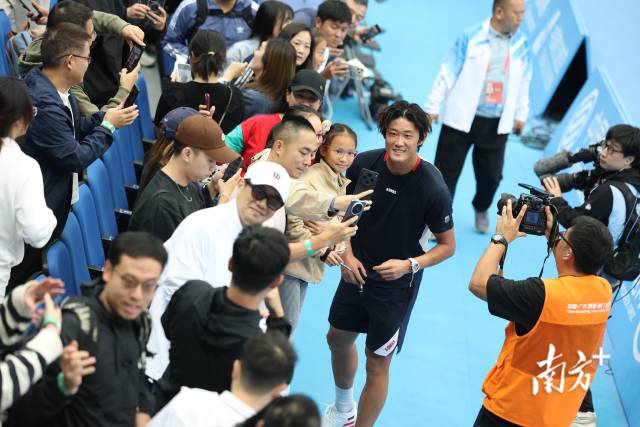 11月3日,大量球迷來到全運(yùn)會賽場,與球員張之臻在賽后熱情互動(dòng)。許舒智 攝