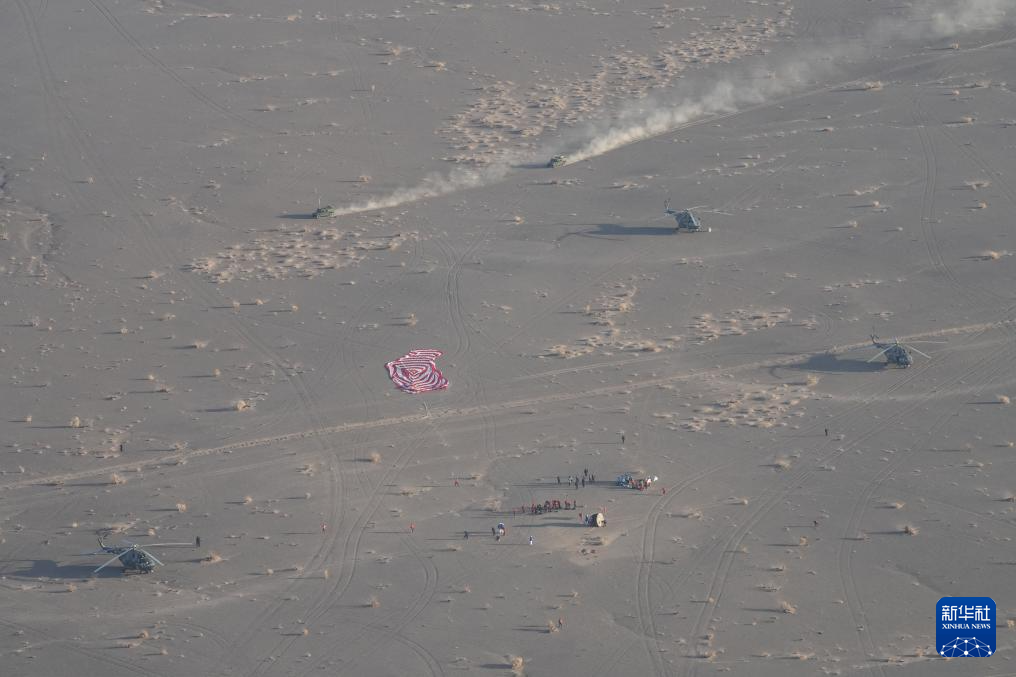 11月14日,載著神舟二十號航天員乘組的神舟二十一號載人飛船返回艙在東風(fēng)著陸場成功著陸。新華社發(fā)(汪江波 攝)