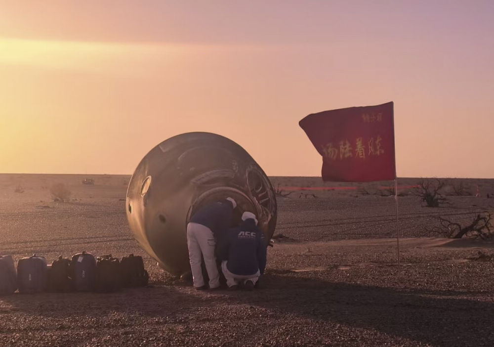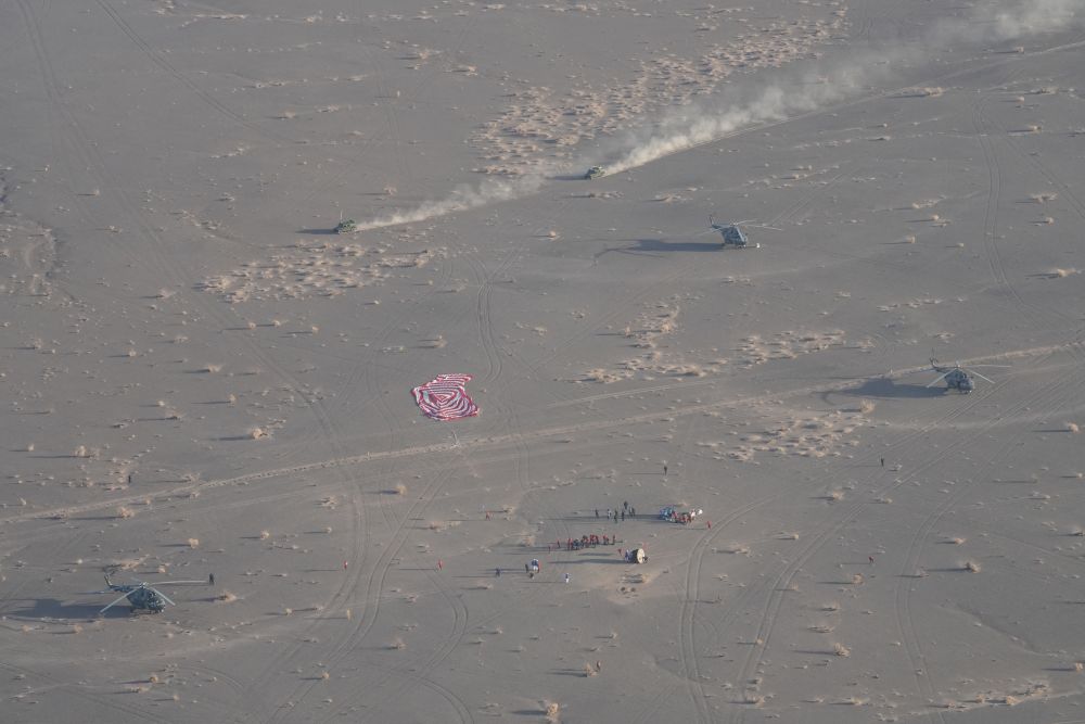 11月14日,載著神舟二十號航天員乘組的神舟二十一號載人飛船返回艙在東風(fēng)著陸場成功著陸。新華社發(fā)(汪江波 攝)
