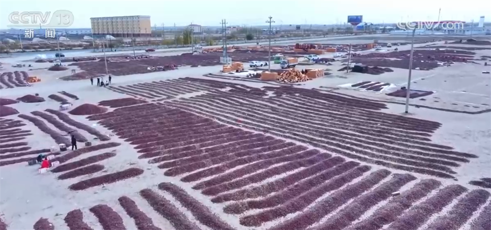 隨著紅棗采摘進(jìn)入高峰期,在策勒縣的戈壁晾曬場,放眼望去,紅彤彤的紅棗鋪陳開去。今年,策勒縣紅棗種植面積達(dá)15萬畝,產(chǎn)量超過3.6萬噸。這些紅棗大部分已被預(yù)訂,主要銷往北京、上海、廣州等地;火紅的晾曬場吸引了眾多自駕游游客慕名而來,游客們走進(jìn)晾曬場分揀、品嘗紅棗,沉浸式感受豐收的甜蜜與戈壁秋景的壯闊。
