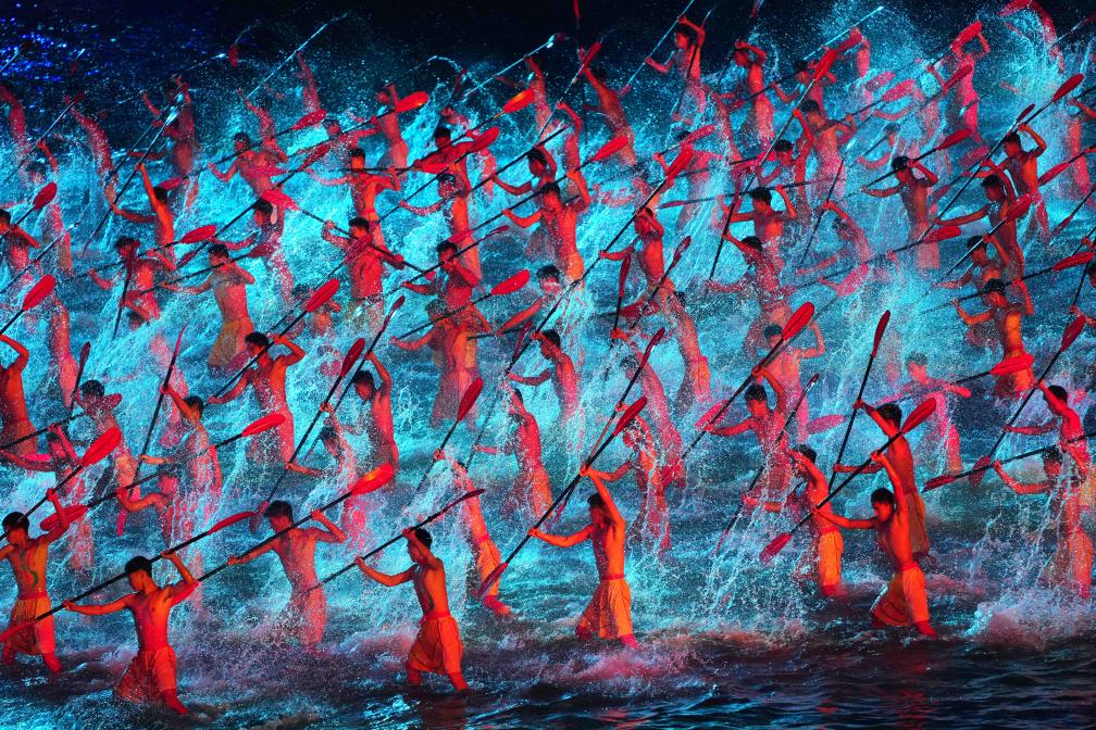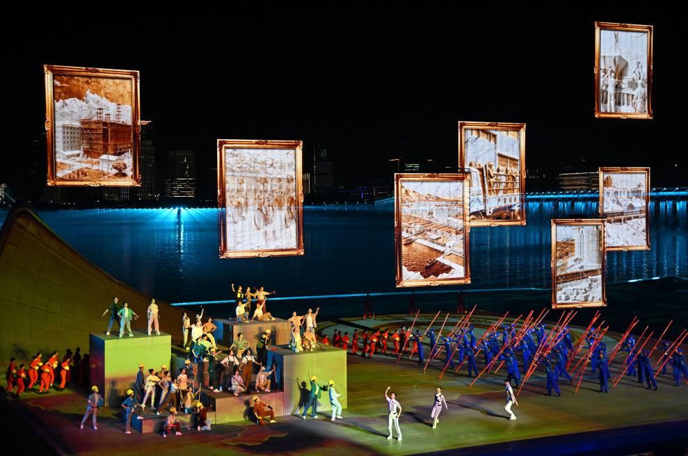 ↑11月9日,在第十五屆全國(guó)運(yùn)動(dòng)會(huì)開幕式上,巨型鰲魚“游入”體育場(chǎng)上空。新華社記者 盧漢欣 攝
