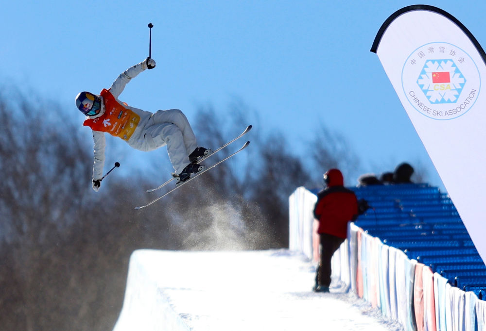 2月23日,亞軍中國選手齊廣璞(左)與隊友、冠軍李天馬在自由式滑雪世界杯(北大湖站)空中技巧男子決賽后。新華社記者 顏麟蘊 攝