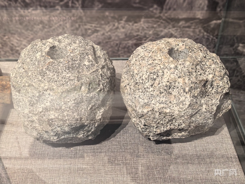 地雷戰(zhàn)紀(jì)念館館藏石雷和制作炸藥的石碾(央廣網(wǎng)記者 劉佳音 攝)