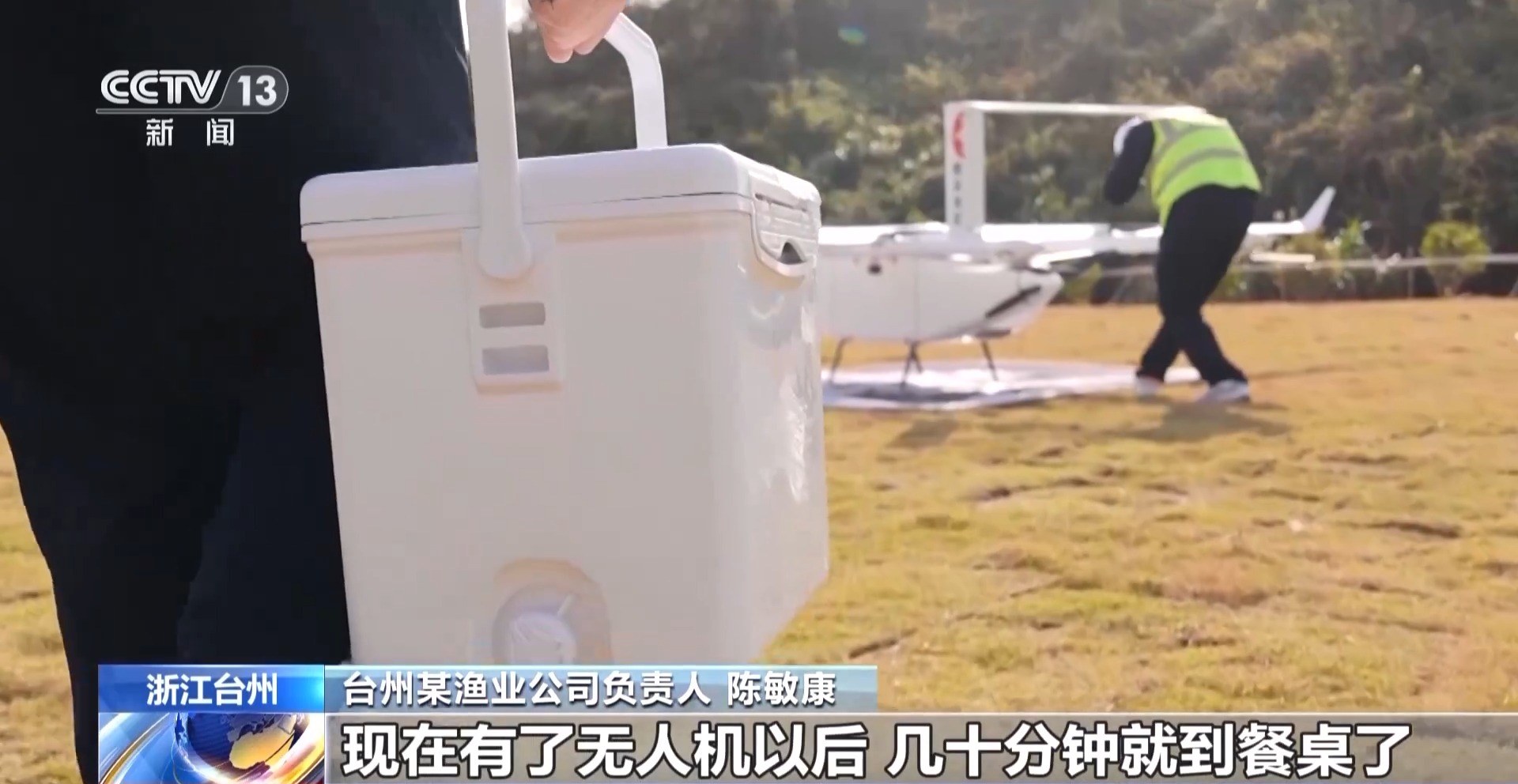 臺(tái)州某漁業(yè)公司負(fù)責(zé)人 陳敏康:以前我們魚捕上去運(yùn)到了市區(qū)都要好幾個(gè)小時(shí),現(xiàn)在有了無人機(jī)以后,幾十分鐘就到餐桌了?,F(xiàn)在無人機(jī)的運(yùn)輸量比較小,但我們來看這個(gè)前景是比較好的,這也為我們島上的漁民開拓了致富的新路子。