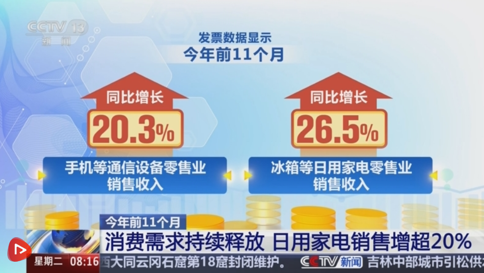 國家稅務總局12月8日舉行新聞發(fā)布會。最新稅收數(shù)據(jù)顯示,2025年以來,在消費品以舊換新等政策帶動下,消費需求持續(xù)釋放。家電、新能源汽車等產品銷售保持較快增長,文旅、體育等領域也呈現(xiàn)較高消費熱度。