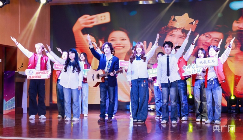 天津外國(guó)語(yǔ)大學(xué)師生表演節(jié)目《在名叫天津的地方》(央廣網(wǎng)記者 周思楊 攝)
