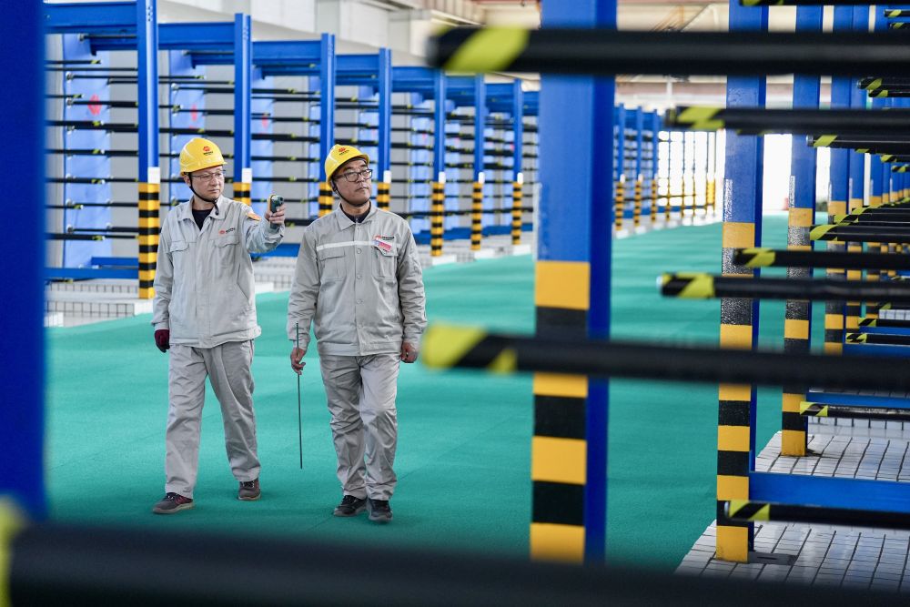 11月18日,在位于寧夏銀川的國能寧夏供熱有限公司中繼泵站內(nèi),工作人員對板式換熱器進(jìn)行巡檢。新華社記者 楊植森 攝