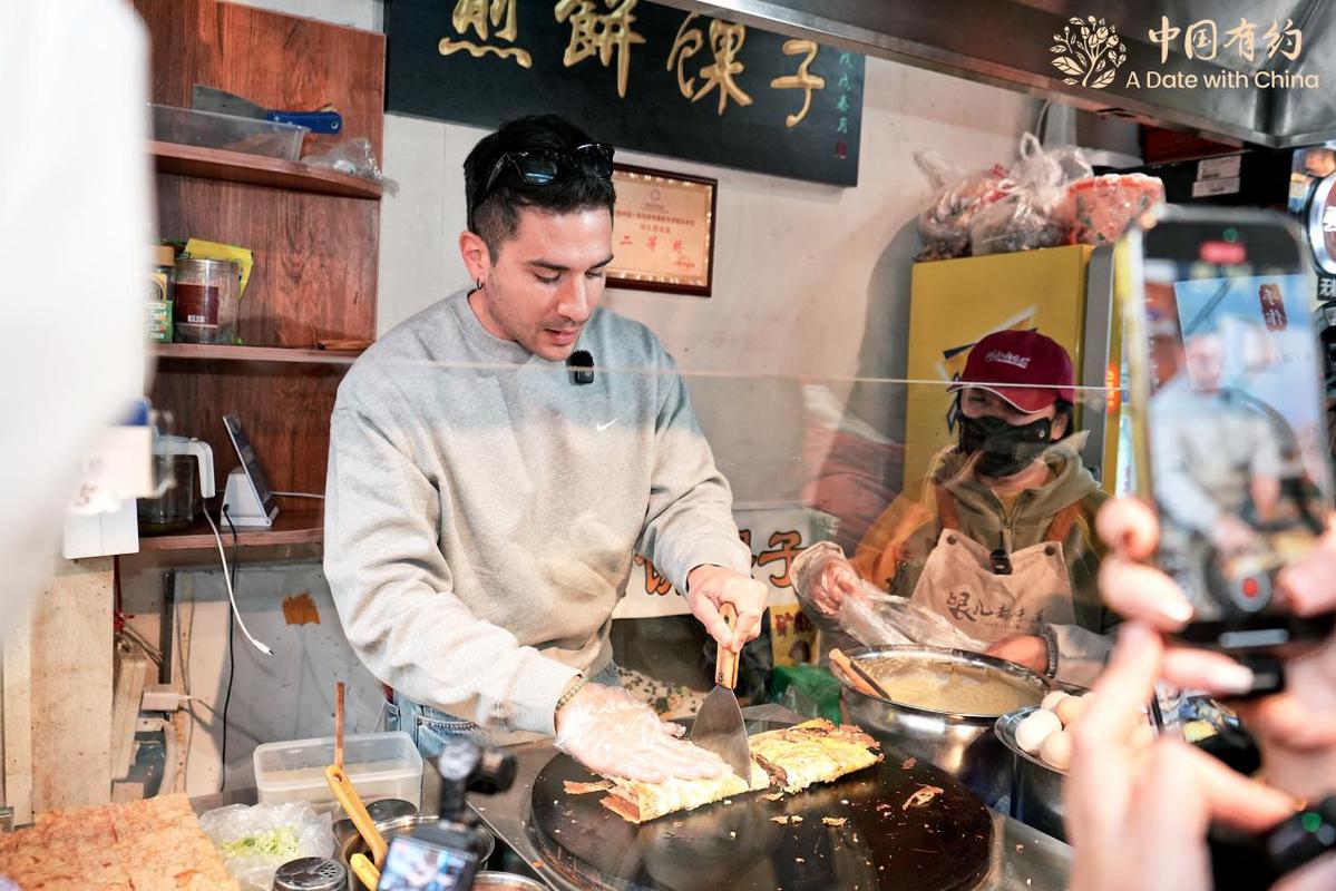 在古文化街,國際采訪團的外國朋友們學習了捏泥人,體驗了皮影戲表演,還親手制作并品嘗了正宗的天津煎餅,沉浸式感受了一把好吃又好玩的天津范兒。
