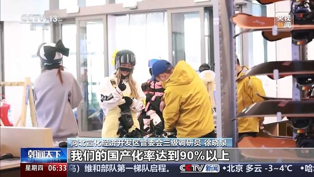 河北宣化經(jīng)濟(jì)開發(fā)區(qū)管委會三級調(diào)研員 徐曉泉:我們的壓雪車、索道,造雪機(jī)等雪場裝備,目前園區(qū)企業(yè)國產(chǎn)化率占到了80%左右。個(gè)人裝備上,我們的國產(chǎn)化率達(dá)到90%以上,在崇禮、在北京等十四、五個(gè)雪場上,近年來累計(jì)銷售額實(shí)現(xiàn)1.2億元。黨的二十屆四中全會明確指出,要推動科技創(chuàng)新和產(chǎn)業(yè)創(chuàng)新深度融合。我們今年投入了1600多萬元進(jìn)行科技研發(fā),一共申報(bào)了6項(xiàng)國家專利,11項(xiàng)行業(yè)標(biāo)準(zhǔn),預(yù)計(jì)要投資1000余萬元進(jìn)行設(shè)備更新。