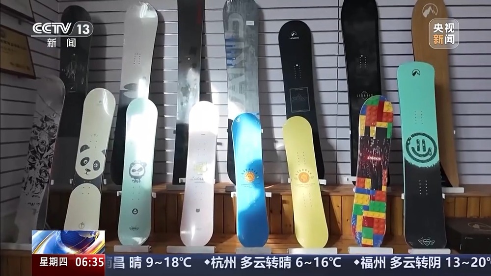 某冰雪裝備生產(chǎn)企業(yè)負(fù)責(zé)人 靳惠媛:2002年的時(shí)候,我正好是做外貿(mào)生意,趕上一個(gè)冬博會,走到一個(gè)展位上,全是板子。那時(shí)候沒有見過這樣的滑雪板。他說剛剛進(jìn)入中國,在國外特別流行了,就進(jìn)貨了10塊單板。