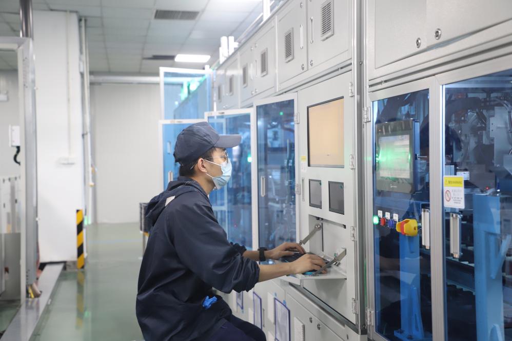 安徽池州高新區(qū),池州市駿智機(jī)電科技有限公司的生產(chǎn)車間里,一片片新能源動(dòng)力電池頂蓋板平穩(wěn)“走”下生產(chǎn)線。